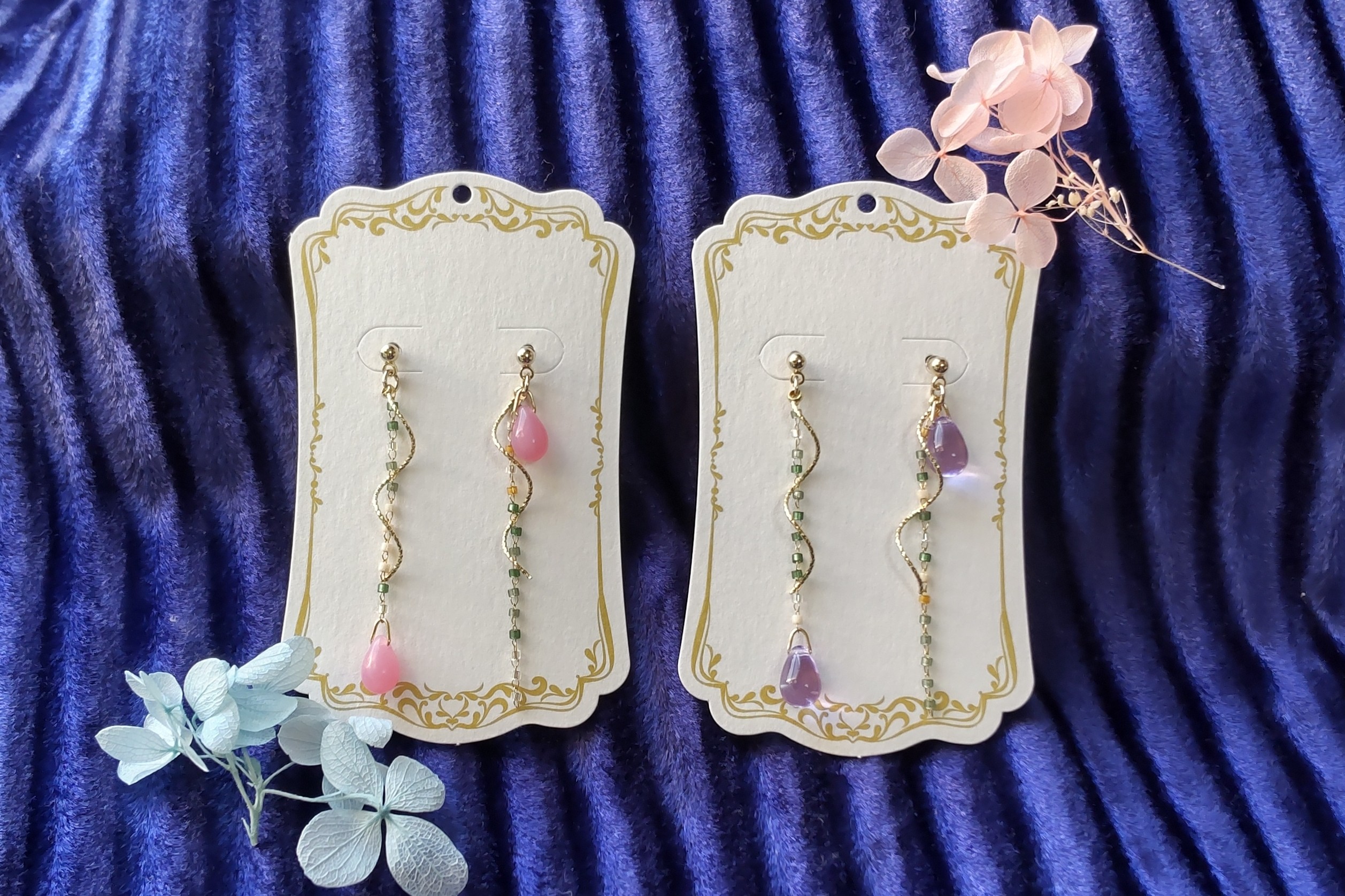 イヤリングはネジバネ式のイヤリングと、樹脂製のノンホールピアスを選択できます。
