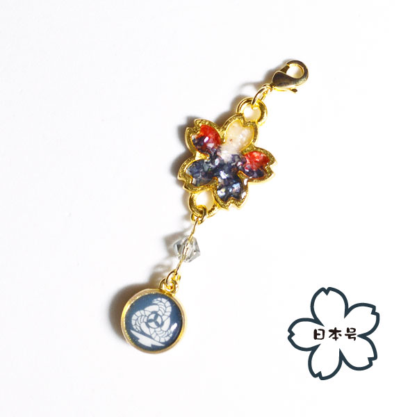 1. シェルを埋め込んだ桜のパーツと紋を組み合わせたチャームです。
