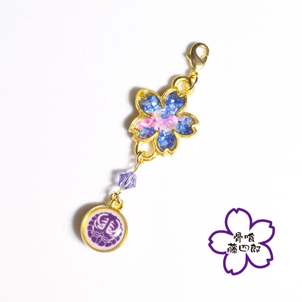シェルを埋め込んだ桜のパーツと紋を組み合わせたチャームです。 シンプルで普段使いしやすいデザインに仕上げました。
